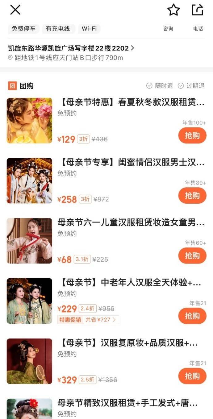 ▲ 洛阳汉服写真店上线母亲节套餐,汉服拍摄深受消费者喜爱(图源:大众点评)