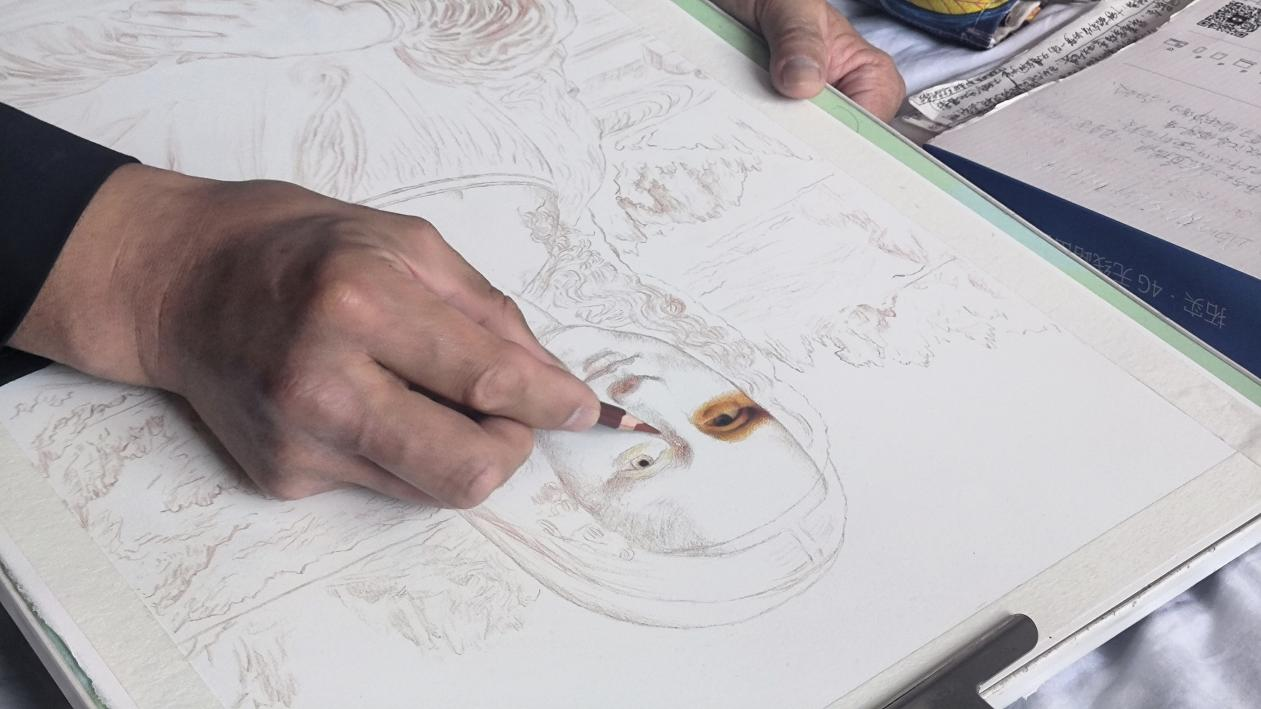 直到现在,他还是坚持从网上寻找绘画教学课程,不断学习绘画技巧。