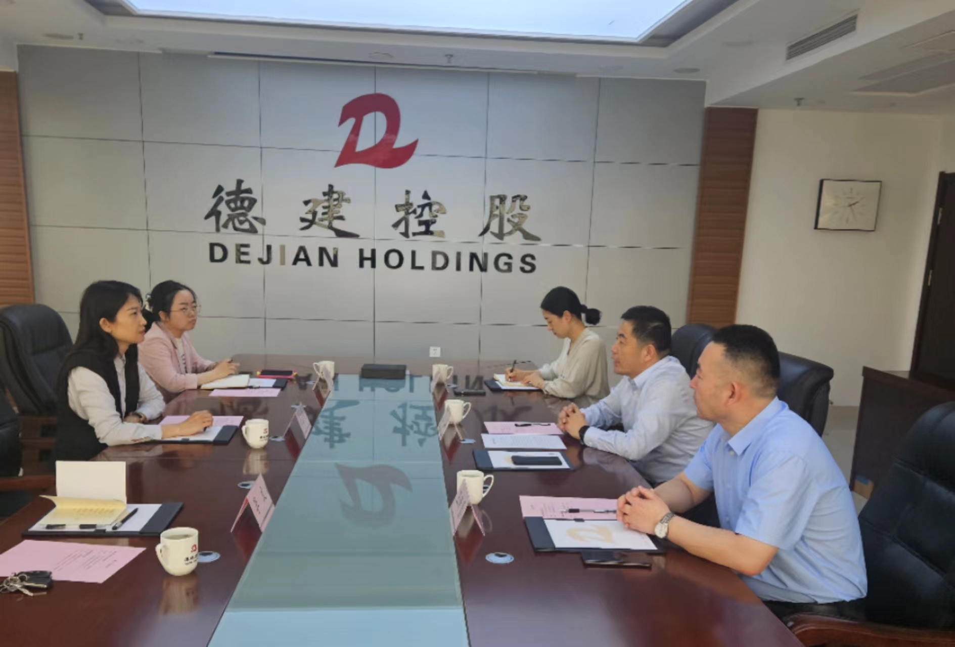 在德建控股有限公司,马玉良同志介绍了长河新经济产业集群园区以及开展服务企业系列活动,德建控股有限公司党委副书记、总经理夏凯同志,公司党委委员、副总经理王新勇同志分别介绍了企业的发展情况、股改和对外经济技术合作、主营业务等企业基本情况。