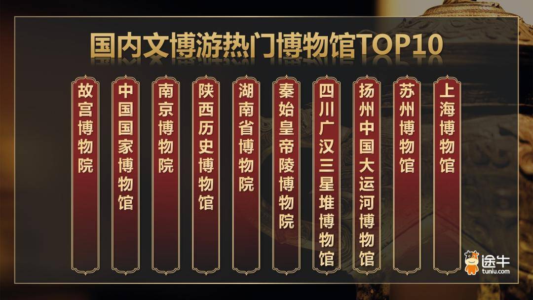 途牛截至目前最新预订数据显示,在今年国内文博游热门场馆中,故宫博物院、中国国家博物馆、南京博物院、陕西历史博物馆、湖南省博物院、秦始皇帝陵博物院、四川广汉三星堆博物馆、扬州中国大运河博物馆、苏州博物馆、上海博物馆等国家一级博物馆预订热度尤为火爆,节假日、双休日基本“一票难求”。