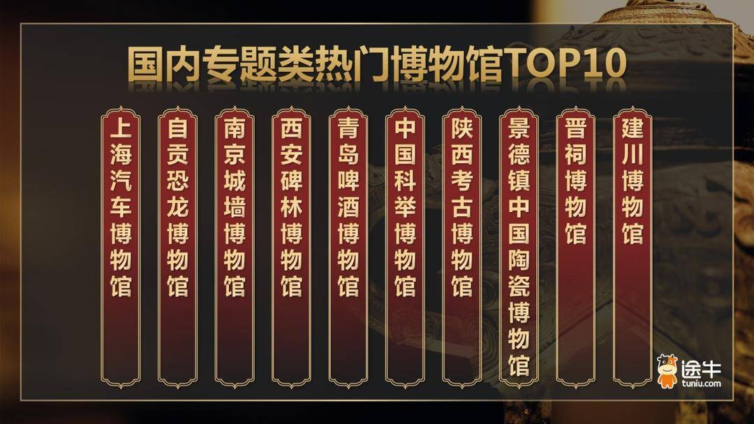 今年以来,一些专题类、特色类博物馆也成为文化旅游的新热点,其中,上海汽车博物馆、自贡恐龙博物馆、南京城墙博物馆、西安碑林博物馆、青岛啤酒博物馆、中国科举博物馆、陕西考古博物馆、景德镇中国陶瓷博物馆、晋祠博物馆、建川博物馆等是途牛用户的热门选择。这些博物馆通过特定领域或主题的展览内容、独特的文化魅力或地域特色,满足了游客对某一领域的深度探索需求,吸引了越来越多的游客前往探访。
