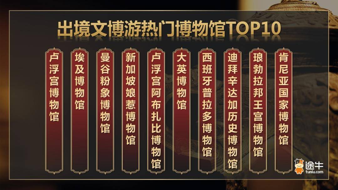 国内文博游如火如荼,出境游客也对各目的地的文博行程充满了热情。途牛截至目前最新预订数据显示,今年出境文博游场馆中卢浮宫博物馆、埃及博物馆、曼谷粉象博物馆、新加坡娘惹博物馆、卢浮宫阿布扎比博物馆、大英博物馆、西班牙普拉多博物馆、迪拜辛达加历史博物馆、琅勃拉邦王宫博物馆、肯尼亚国家博物馆等热度排名靠前,为游客深入了解当地文化提供了重要窗口。