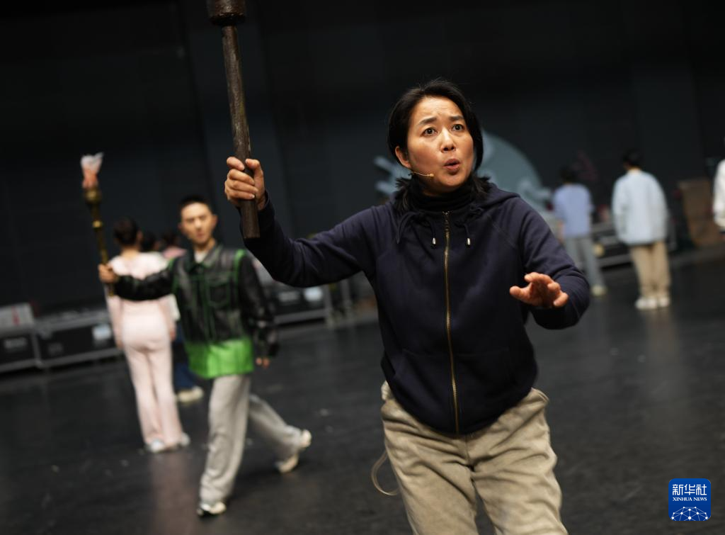 2024年4月7日,浙江小百花越剧团团长蔡浙飞在浙江杭州参加新编历史剧《苏秦》的排练。新华社记者 翁忻旸 摄