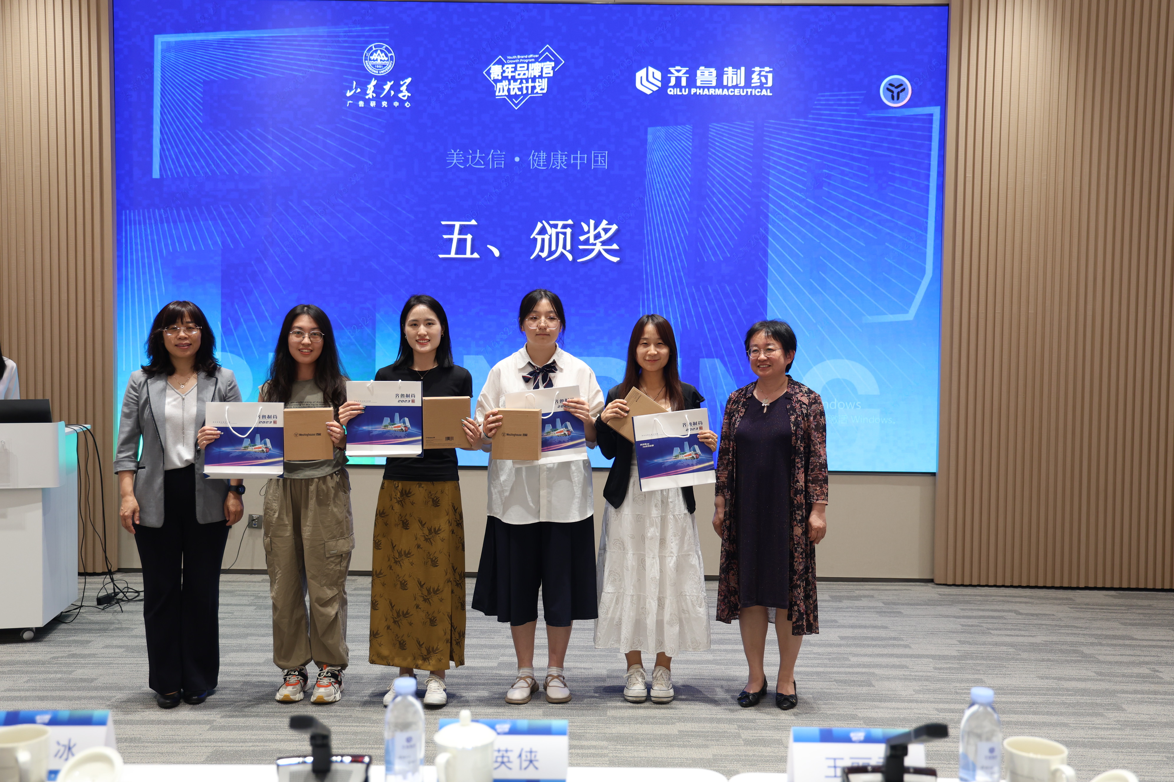 最终,第一组“有请下一组”被评选为本次工坊活动的一等奖团队,齐鲁制药有限公司副总经理王伟萍、山东大学新闻传播学院党委副书记王丽君为获奖团队颁奖。