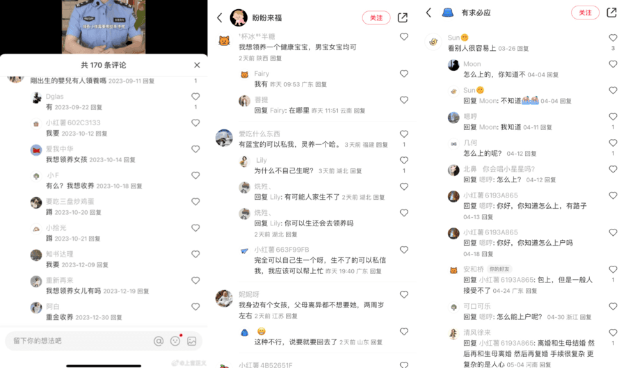 上官正义称,甚至有胎儿还在腹中,就已经在小红书平台公开预订“送养”,这些送养,实为明码实价的金钱交易。他们以公开发帖、开设话题、评论等方式发布信息,有的在普法类的文章下从事违法信息的发布,其中也有打着领养送养及贩卖出生证的旗号,实施诈骗。