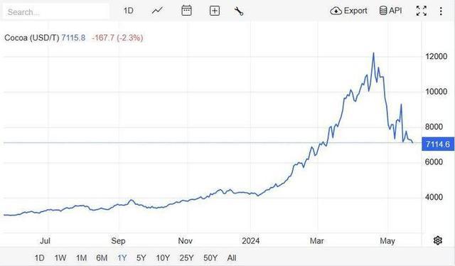 而就在半个多月前,可可期货价格刷新了历史高价,创下12261美元/吨的新高。去年同期价格,其仅为3000美元/吨左右,价格涨幅甚至超过了同期的黄金。尽管近日可可价格出现明显回落,但价格仍远高于历史的平均水平。