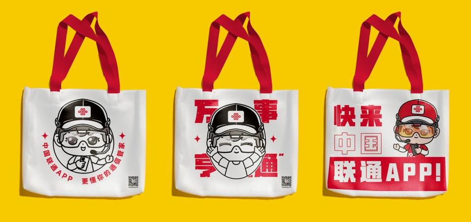 其中通通环保帆布袋共设计三款,主要以红色、黑色为主色调,图案简洁却极具设计感,巧妙地弱化了广告痕迹,日常使用不尴尬、有品位。通通帆布袋作为奖品现身于各类节日线上活动、直播间抽奖活动以及线下直播采访等场合,让山东联通的用户以及来自各地的游客都能深切感受到山东联通的用心服务。