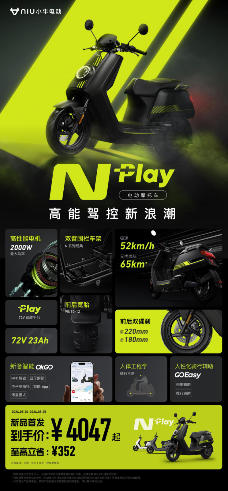 小牛电动N Play爆款首发4047元起,电摩市场再添黑马