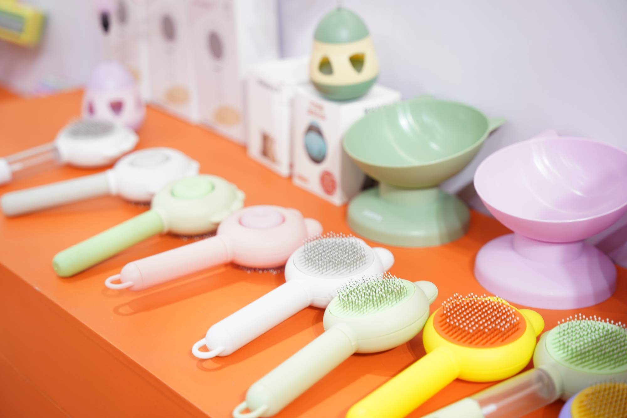 马卡龙色系的猫咪浮毛梳(央广网记者 尚天宇 摄)