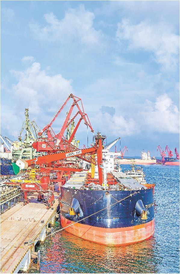 依托“前港后厂”模式,日照港与城市互相赋能,深入推进港区、园区、城区“三区互融”。(□山东港口日照港供图)