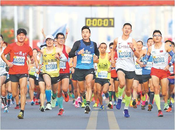 日照把赛事作为推动全民健身、刺激体育消费和塑造城市品牌的重要抓手,加快打造现代化海滨体育名城。图为日照马拉松比赛。(□资料图)
