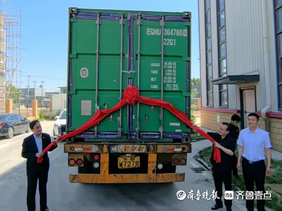 仪式上,柬埔寨领事桑莫尼与乐陵市商务局党组书记、局长靳建华共同开启集装箱。
