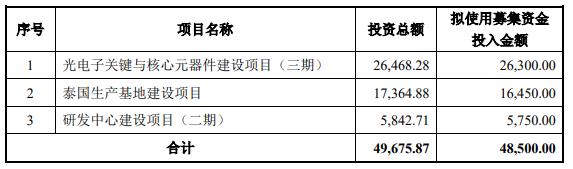 腾景科技5月25日发布2024年度向特定对象发行A股股票预案。本次向特定对象发行股票募集资金总额不超过48,500.00万元(含本数),扣除发行费用后的募集资金净额将全部用于光电子关键与核心元器件建设项目(三期)、泰国生产基地建设项目、研发中心建设项目(二期)。