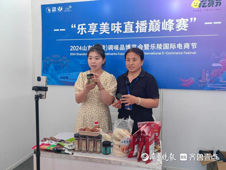 “直播间的家人们,这款调料是咱们乐陵杨安镇生产的,无论是外出野餐,还是居家使用,非常方便。希望通过2024山东(乐陵)调味品博览会暨乐陵国际电商节,增加直播经验,提升直播间人气,让之后的助农直播走得更远更好。”5月27日,在乐陵市会展中心,徐国英正在直播带货,在2024山东(乐陵)调味品博览会暨乐陵国际电商节期间,乐享美味直播巅峰赛同时举行,她也参加了本次比赛。