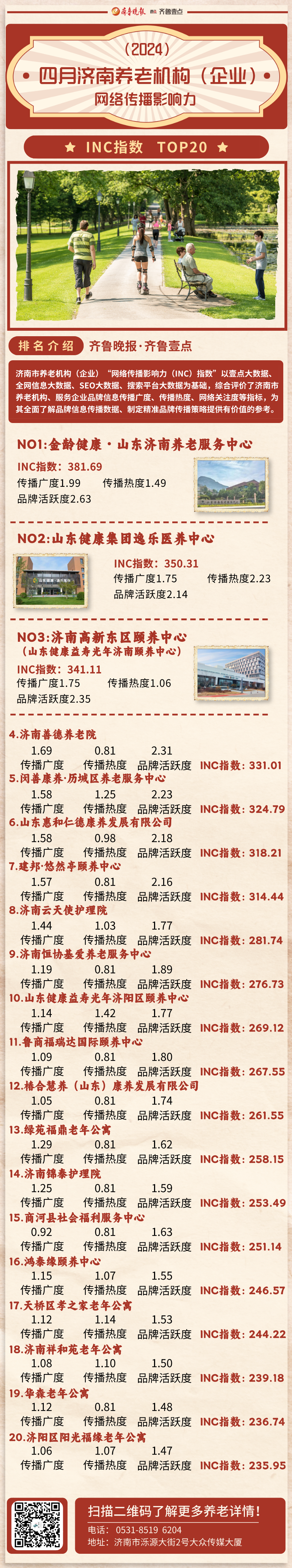 养老观察|4月济南养老行业传播力发布 山东健康3家机构进前十