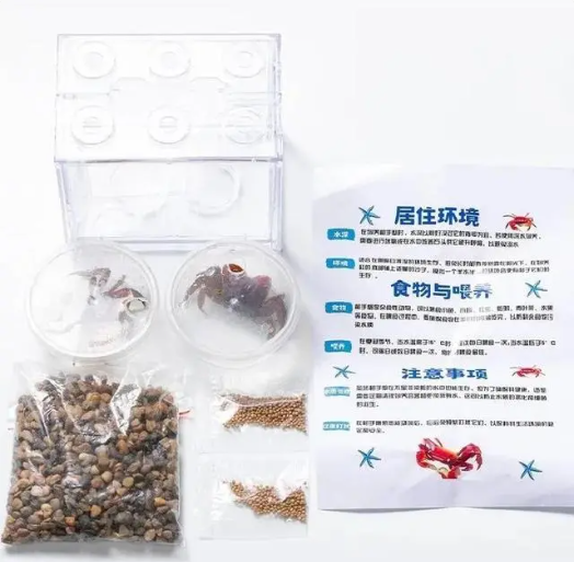螃蟹送来时搭配了盒子、沙石、两包饲料和一份相手蟹养殖说明书。无独有偶,余杭的小小最近也当起了“养蟹人”。而她的小螃蟹已经住上了大别墅。