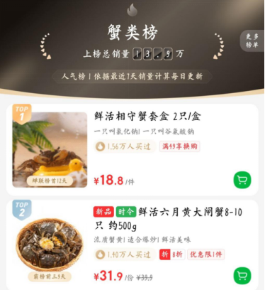 某买菜小程序荣登蟹类榜榜首的“相守蟹”