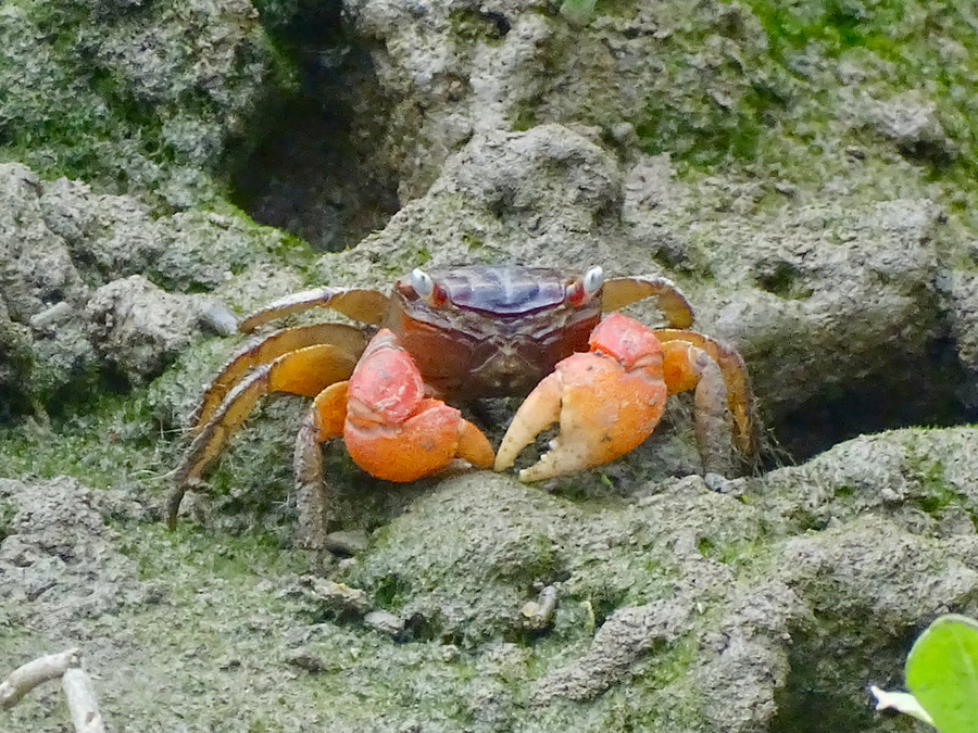 中华东方相手蟹是华东地区沿海的土著居民,俗称“蟛蜞(péng qí)”,世世代代生活在河流入海口的滩涂上,掘穴而居。