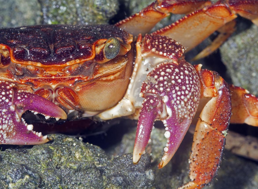 与梭子蟹、大闸蟹等偏好水生的种类不同,中华东方相手蟹是具有一定陆化程度的蟹类,也就是说,除了蜕壳、繁殖等特殊情况外,成年相手蟹可以在水量较少的情况下生存很长时间。