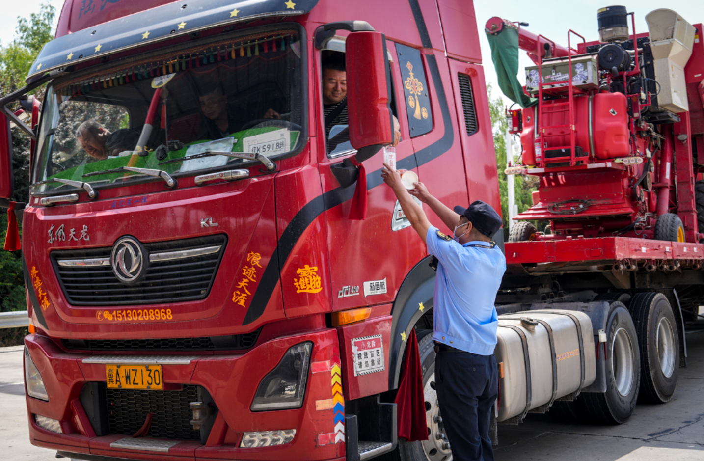 据介绍,针对运输联合收割机车辆通行时间较为集中、车辆较多等实际情况,采取分车道通行的方式,增设专用通道,合理增配人员,在车流量高峰时段对车辆进行指挥疏导,安排专人提前查验,提高单车通行效率,避免车辆拥堵。