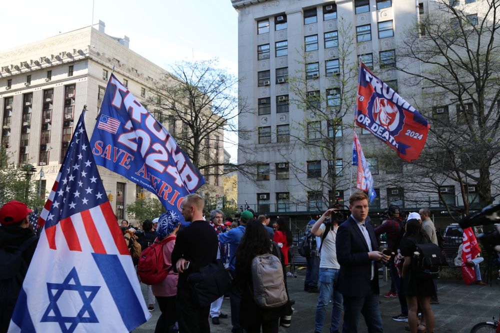 4月15日,在美国纽约,美国前总统特朗普的支持者在法庭前的公园举行集会。 新华社