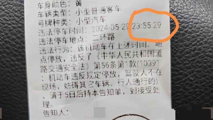 据前述网友发布的帖文,威远交警半夜12点还在工作。帖文中罚单显示,一辆黄色小型普通客车在二环路违法停车,违法行为是“机动车违反规定停放,驾驶人不在现场,妨碍其他车辆、行人通行”,违法停车时间记录为5月29日23时55分。这名网友还表示,自己违停贴罚单没有任何意见,但认为半夜12点开罚单多少有点不妥。