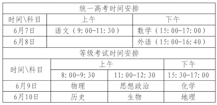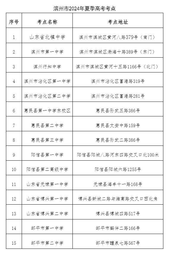 2024年滨州市夏季高考考试时间及科目、考点安排公布