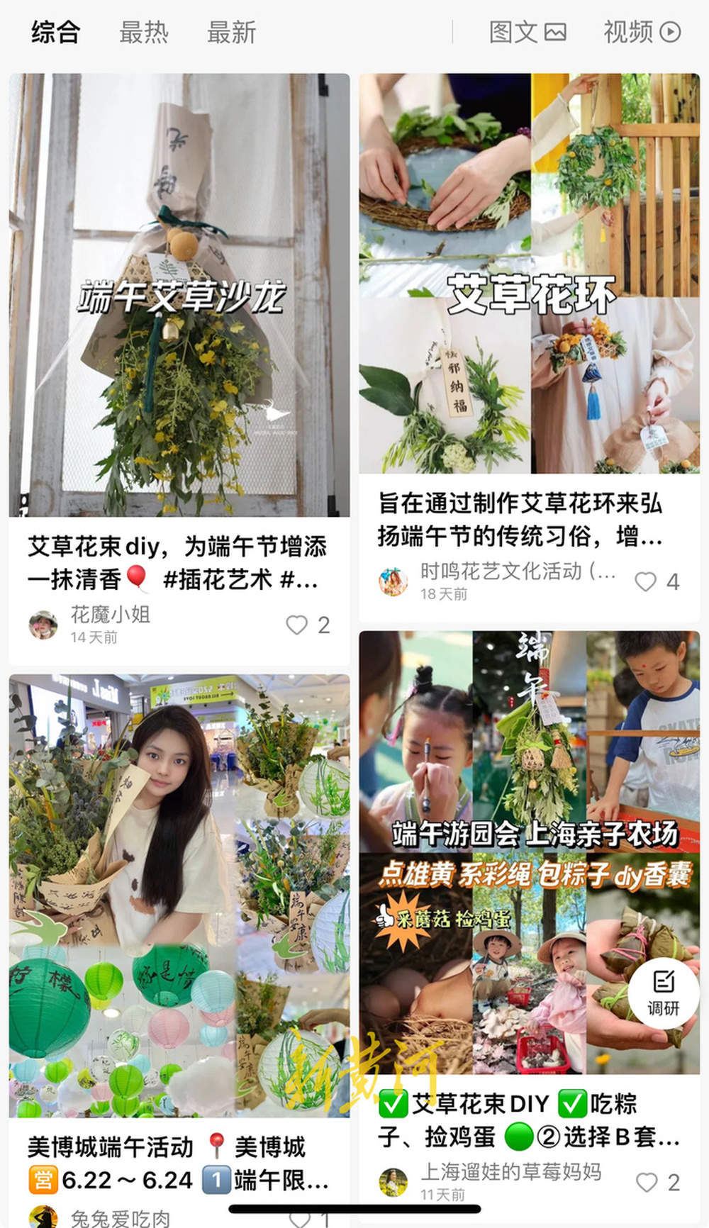 在小红书等社交平台,“很新的艾草门挂”成为热门话题。不仅有艾草门挂的分享笔记,也有如何制作艾草花束的教程笔记,不少有数千点赞。不少网友在线求制作教程,也有网友晒出了自己制作的成品门挂展示分享。