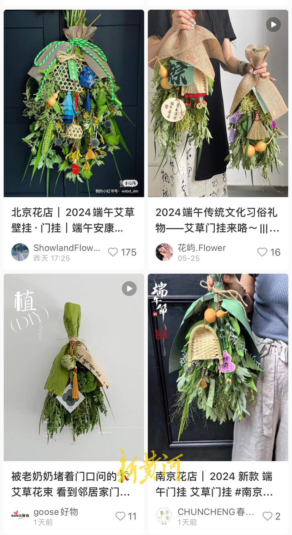 “线上预订不少,我们也在小红书上做内容‘种草’和售卖,目前线上已经预订出了几百份。”记者线上咨询,繁花花艺店店员回复,每款艾草门挂都有不同主题,如“诸事皆宜”,除了搭配艾草、菖蒲、黄金球等叶材,还装饰端午节主题卡片、铃铛、干葫芦等。