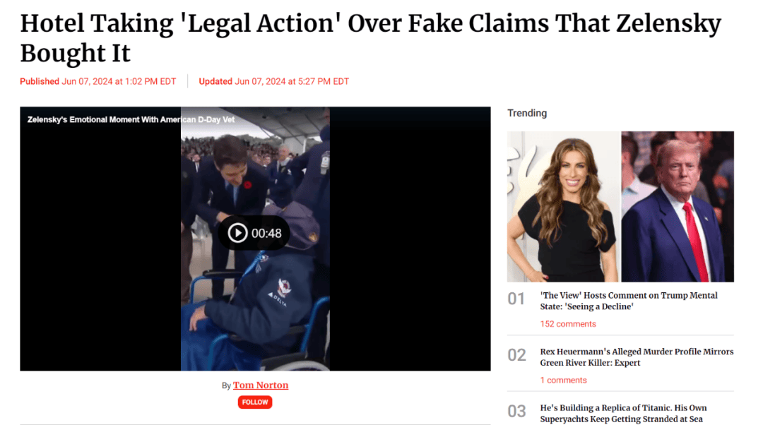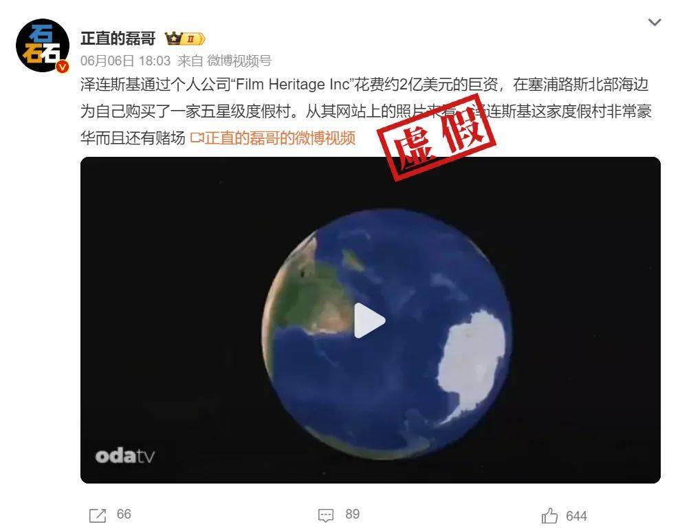 - 网传“泽连斯基通过个人公司在塞浦路斯北部购买度假村”一事没有实证,该说法源自土耳其媒体Oda TV在6月1日发布的一篇报道,报道中展示了一个假冒的度假村酒店网站。相关酒店及乌克兰驻塞浦路斯共和国大使馆均已否认网传说法。