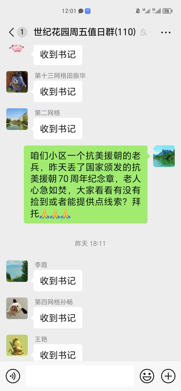 在得知线索后,世纪花园社区党委书记、居委会主任邵涛立即组织发动各网格力量,迅速在20多个网格群里转发,扩大寻物消息覆盖面。