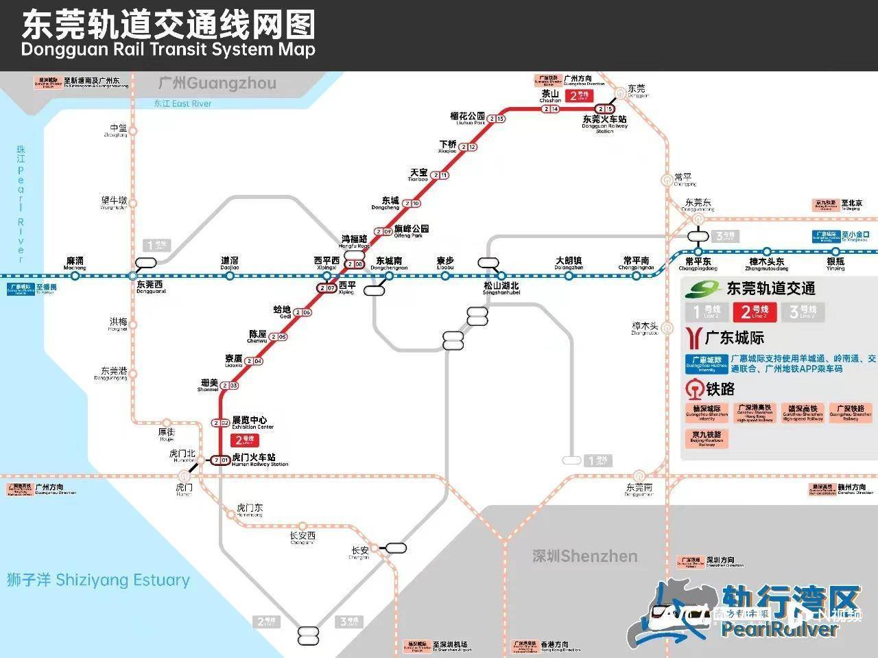 目前,东莞开通运营仅有地铁2号线。但作为粤港澳大湾区为数不多的几个人口超1000万的城市之一,东莞跨城通勤的需求量非常巨大。