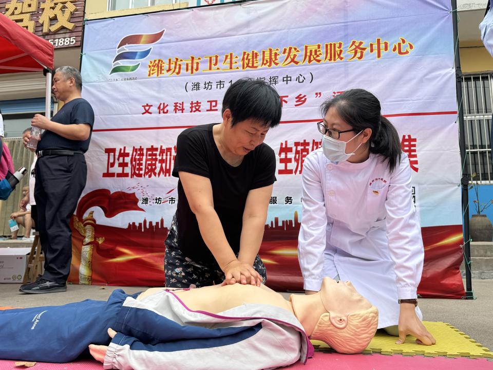 6月14日,潍坊市卫生健康发展服务中心联合潍坊市中医院、昌乐县鄌郚镇中心医院到鄌郚镇大集开展卫生健康知识(院前急救、生殖健康)“三下乡”活动。这是今年首次举办科普下乡活动,选派了优秀医疗骨干到基层开展现场实践教学科普,向广大基层群众传授了基本常用的急救知识,提高了基层群众的健康意识和应急处理能力。