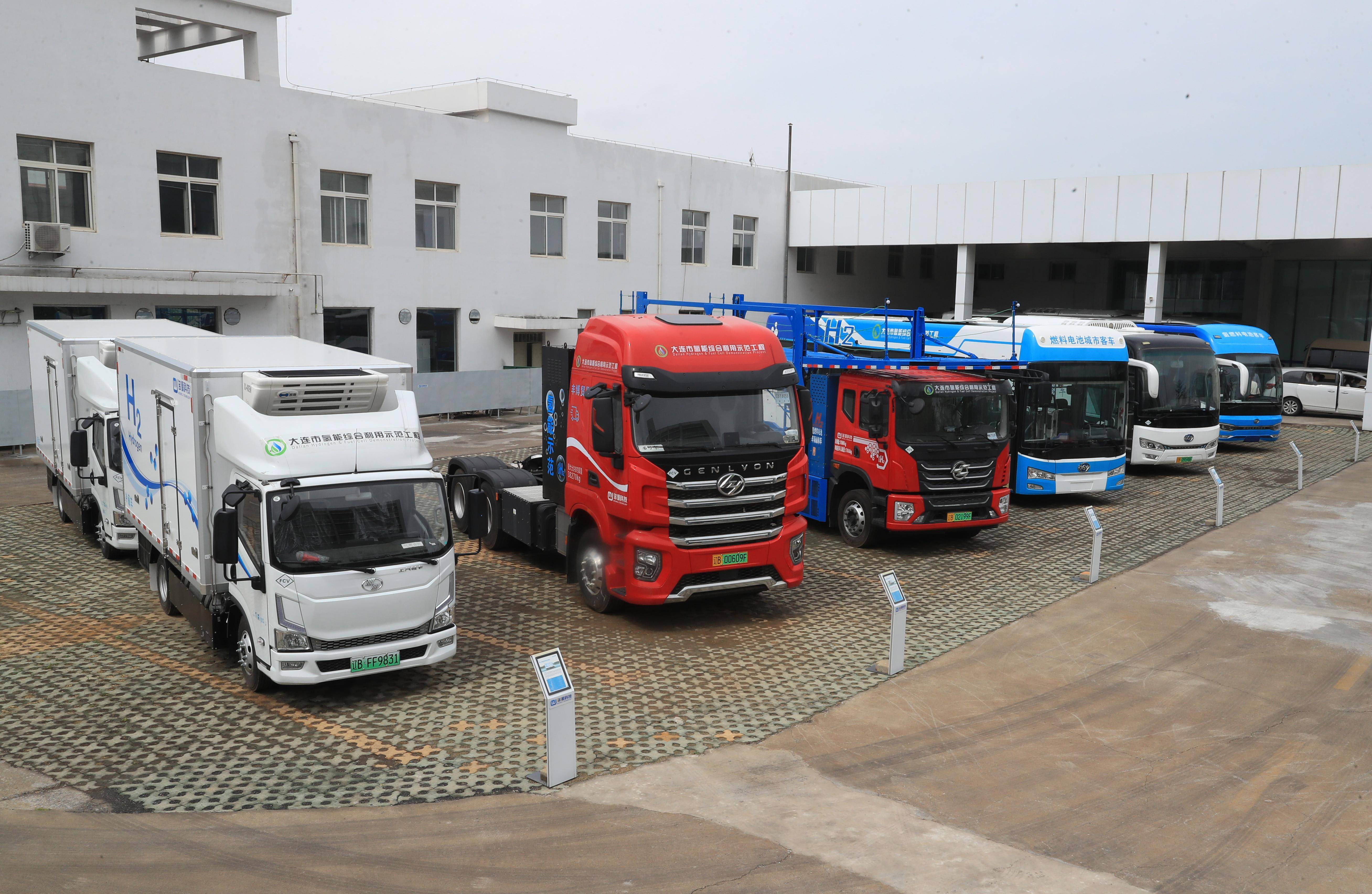 6月14日在洺源科技(大连)有限公司拍摄的使用燃料电池的客车、重型牵引车和货车。洺源科技(大连)有限公司瞄准氢能与燃料电池行业,专注于氢燃料电池动力系统研发、制造、销售,提供燃料电池车辆运营以及优质动力系统解决方案。 新华社记者 杨青 摄