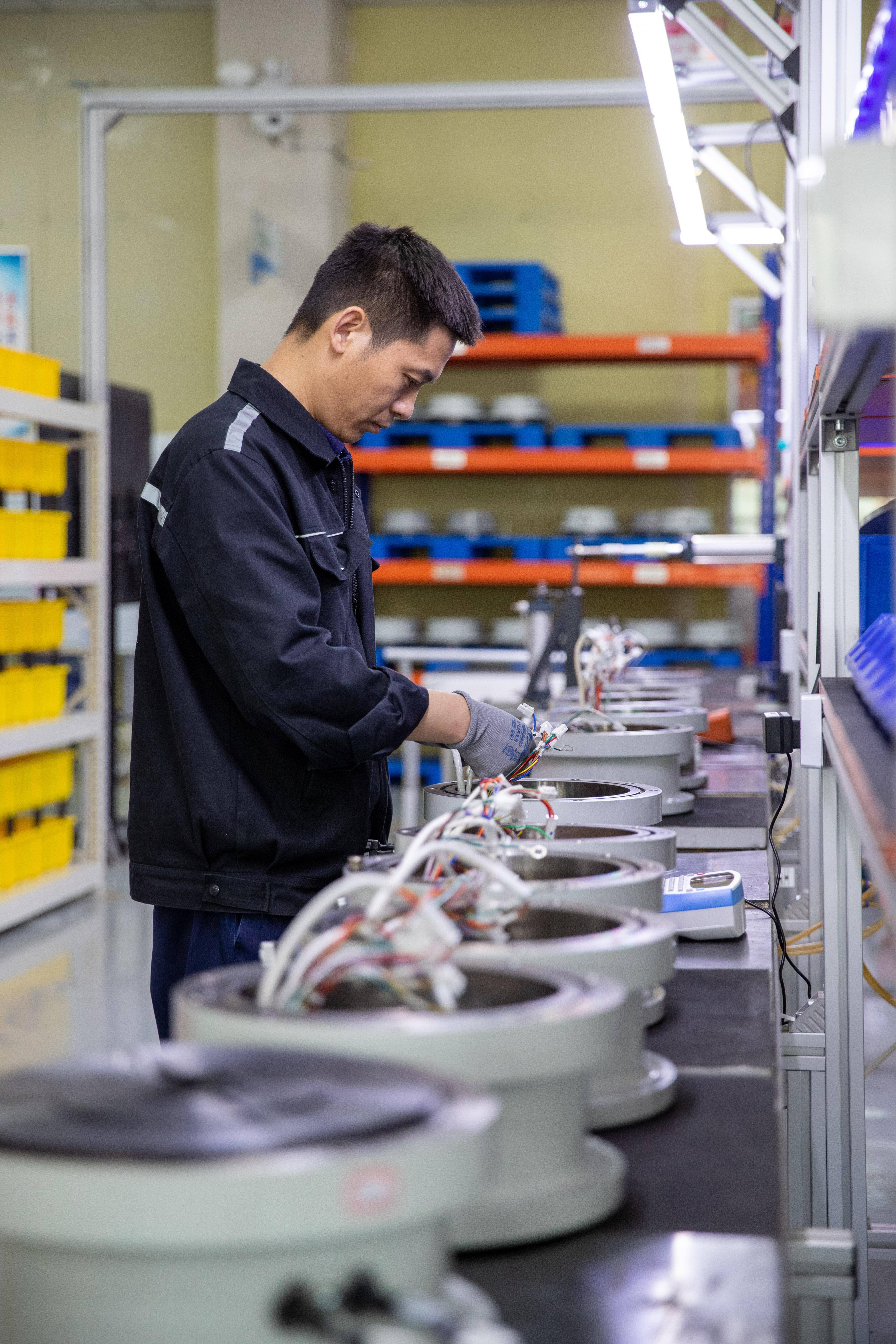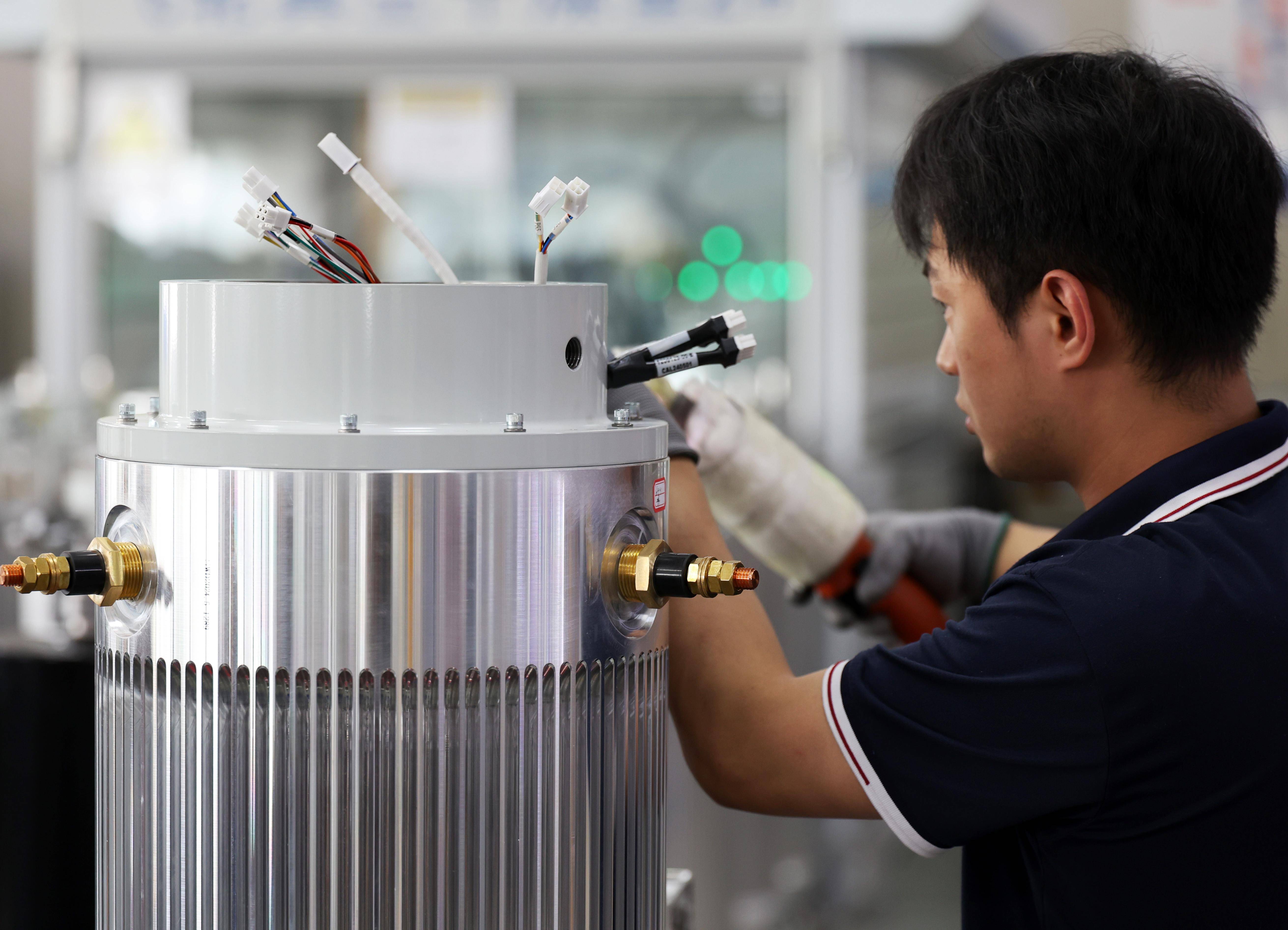 6月13日,工人在沈阳微控飞轮技术股份有限公司车间工作。沈阳微控飞轮技术股份有限公司成立于2018年,深耕飞轮储能领域,以磁悬浮飞轮技术成为一家“独角兽”企业,其产品最高转速可达41000转/分钟。 新华社记者 李钢 摄