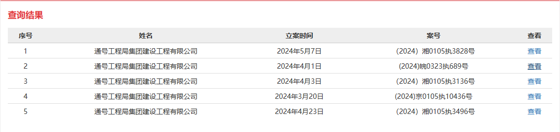 记者从中国执行信息公开网获悉,2024年,通号工程局集团建设工程有限公司共有5条被执行信息,执行法院分别为北京市朝阳区人民法院、安徽省蚌埠市固镇县人民法院和湖南省长沙市开福区人民法院,执行总金额642.01万元。