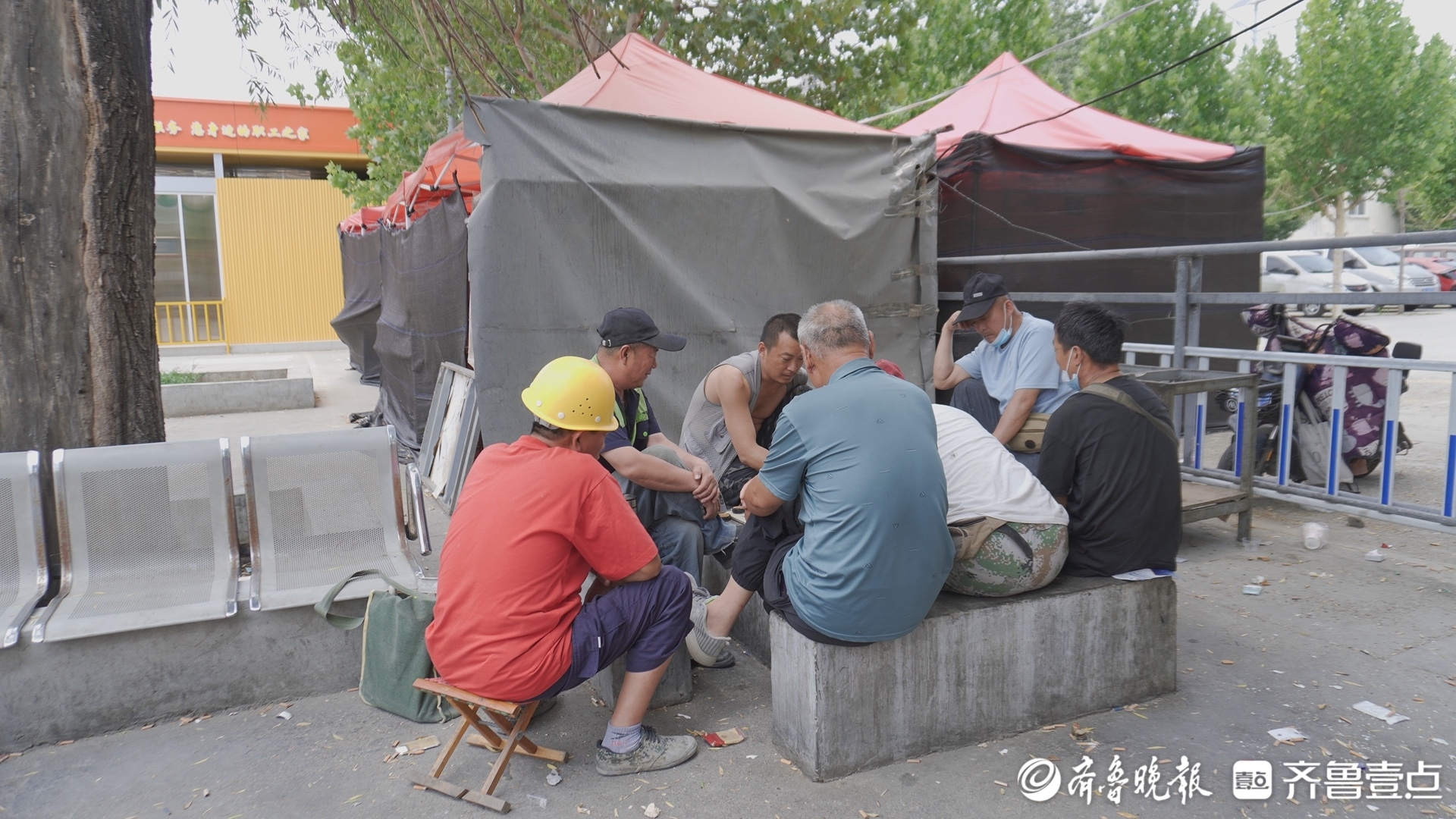 近期,济南市气象台持续发布高温橙色预警信号,出现大范围持续性高温天气,局部地区可达40℃以上。高温天气下,济南劳务市场情况如何?“趴活人”们生计咋样?