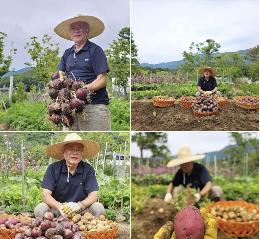 报道称,文在寅17日下午在社交媒体脸书上发文称,“收获了紫洋葱、紫薯和土豆”,并附上了4张照片。报道描述称,照片中的文在寅手里拿着洋葱和土豆,坐在这些农作物前,显得非常平静。