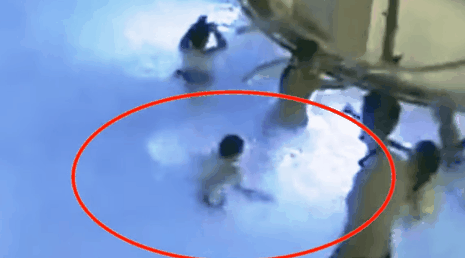 红圈圈里,一名5岁的男孩溺水挣扎,而旁人看来,他只是在水中玩耍而已。
