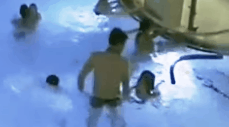 这是芬兰一个公共泳池的监控录下的画面。