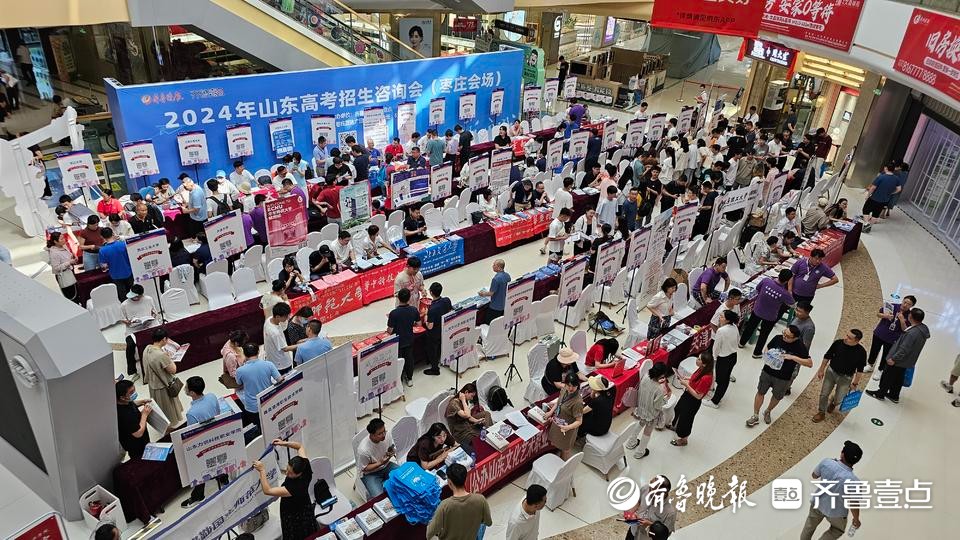 6月27日,2024山东高招会枣庄分会场在枣庄万达广场开幕。来自全国各地的近百所高校参展,现场接受考生和家长咨询。