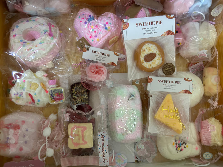 羊姗姗告诉记者,自己在今年1月入坑,最初的“捏捏”就是纯色再撒一点装饰物,做工很简单。短短几个月,市场上的“捏捏”就做得越来越精美,价格也水涨船高。几十元、上百元一个“捏捏”已经成为普遍情况。同时,很多小店主也摸索出了自己的风格,做大做强。