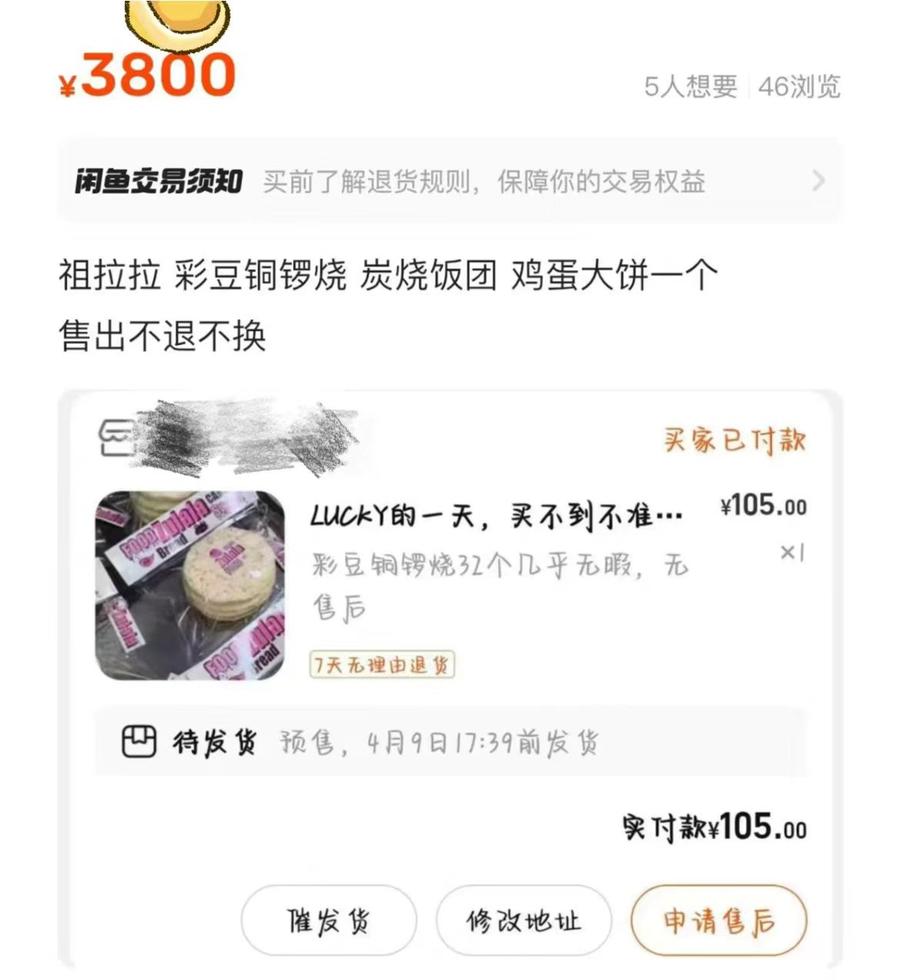 某店铺原价105元的铜锣烧款式“捏捏”在二手市场上的报价已接近4000元。(图片截自网络)