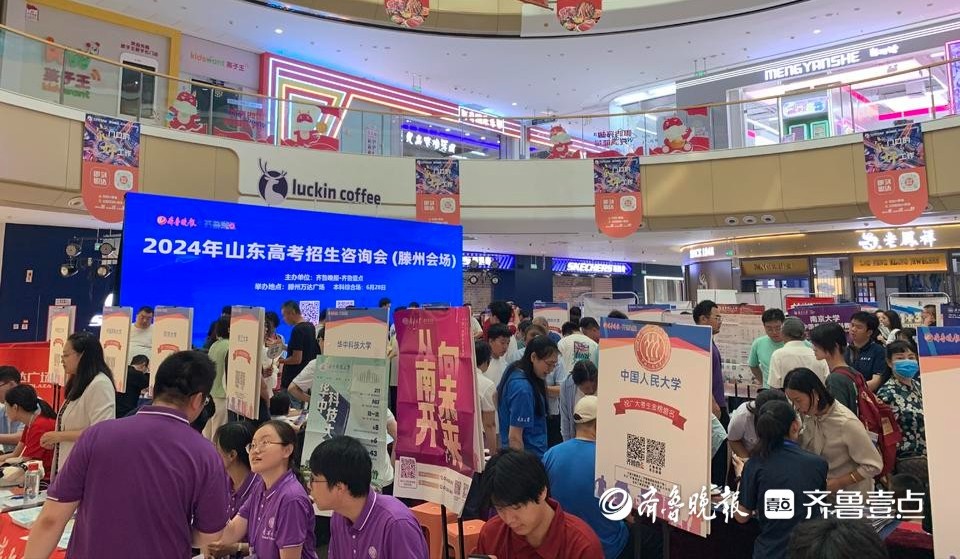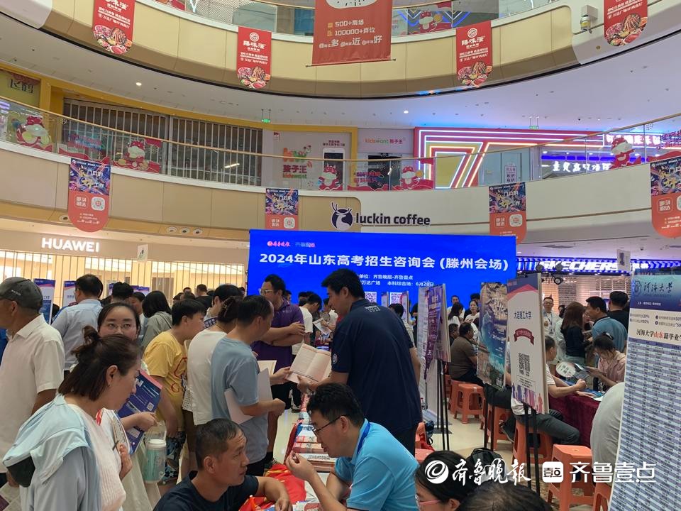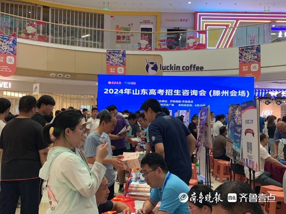 6月28日,2024年山东高招会滕州分会场在滕州万达广场火爆开场。来自全国各地的近百所高校参展,现场接受考生和家长咨询。