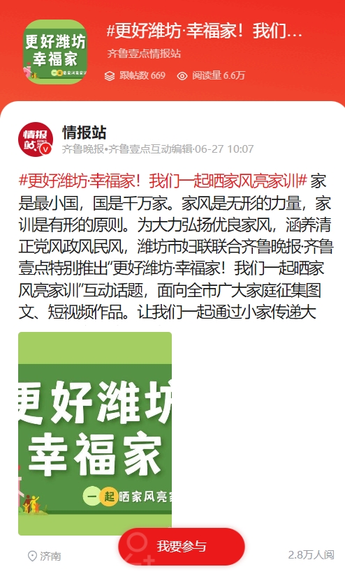 开设更好潍坊·幸福家互动话题,潍坊市妇联邀你一起晒家风亮家训