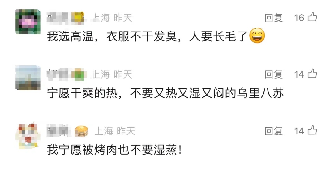 有人还是不喜欢湿哒哒,还有网友表示“宁愿高温,也不想长毛”,衣服都“馊了”!