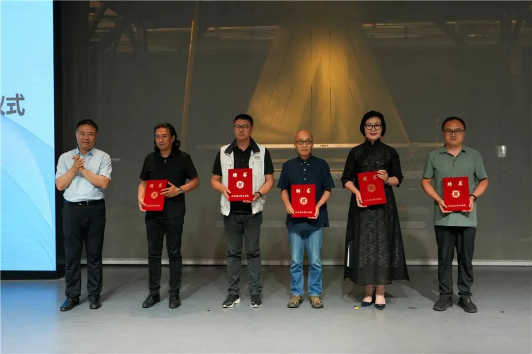 山东轻工职业学院党委书记范桂君为中国文化艺术发展促进会传统服饰文化专业委员会主任、中国美术家协会服装艺委会名誉主任、中国服装设计师协会副主席吴洪、山东工艺美术学院服装学院院长李杰、山东管理学院艺术学院院长范振坤颁发山东轻工职业学院客座教授聘书,为上海时尚产业发展中心理事长邵峰、山东省服装设计协会会长周锦颁发山东轻工职业学院产业教授证书。