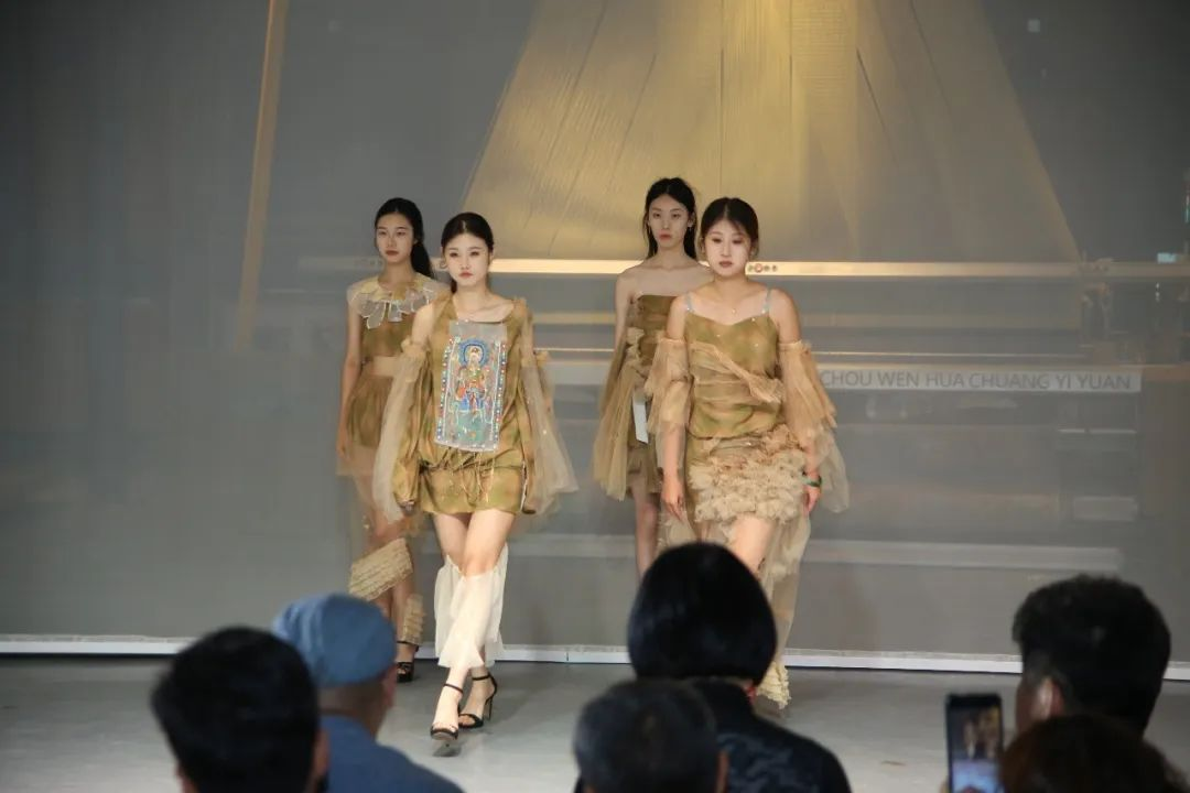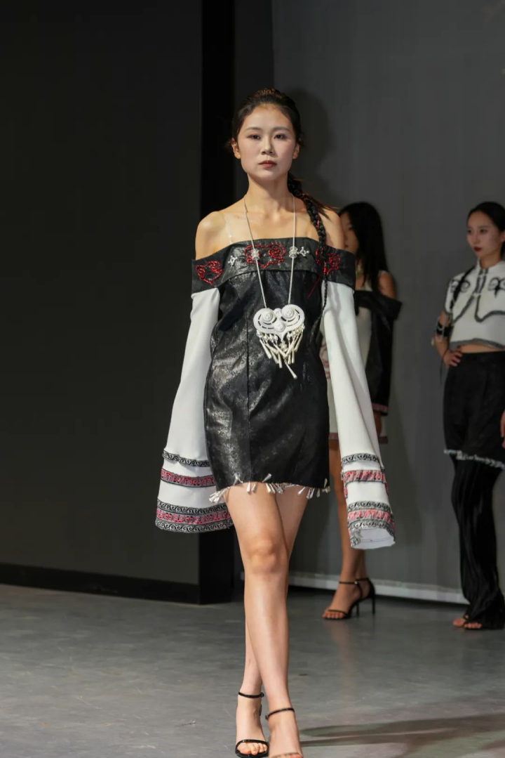 山东轻工职业学院国际时尚学院作品汇报展演在霓裳羽衣汉服社的精彩汉服开场舞中拉开帷幕,此次作品汇报展演以“寻迹”为主题,深入挖掘中华民族优秀传统文化当中的经典设计元素,融合国际时尚流行趋势,通过极具时尚创意的服装设计作品,展现传统元素与现代时尚的融合与碰撞之美,为观众带来了一场视觉盛宴。