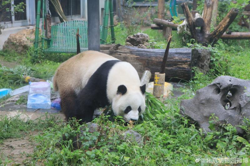 萌兰在吃笋。@北京动物园微博 图