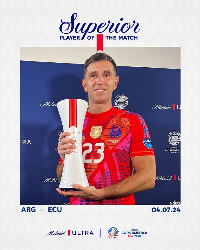 赛后,点球大战中连续扑点的阿根廷队门将马丁内斯获评全场最佳。